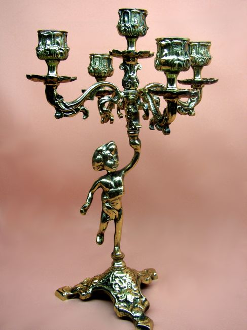 Mosiężny świecznik z chłopcem, 5-ramienny, oksydowany, stylizowany "na stary" (Nr prod.: 1056/ZAL-17)