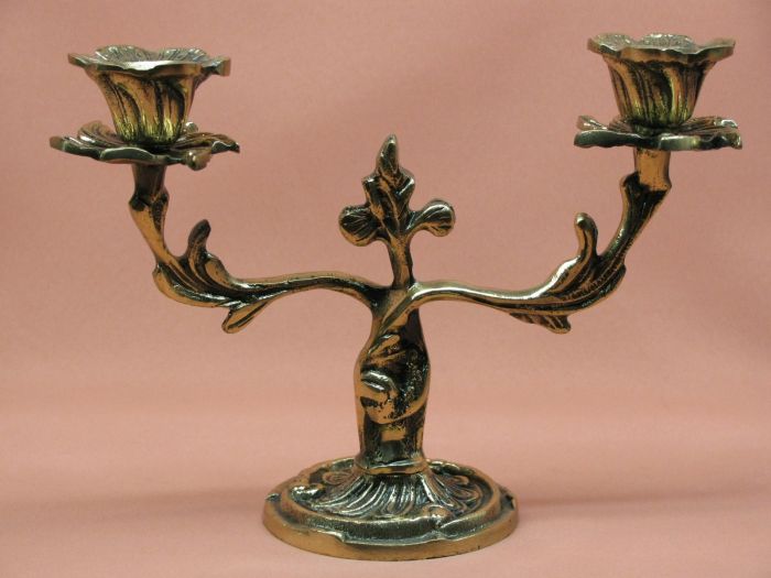 Mosiężny, oksydowany świecznik na dwie świece. (Nr prod.: 532/WP-222)